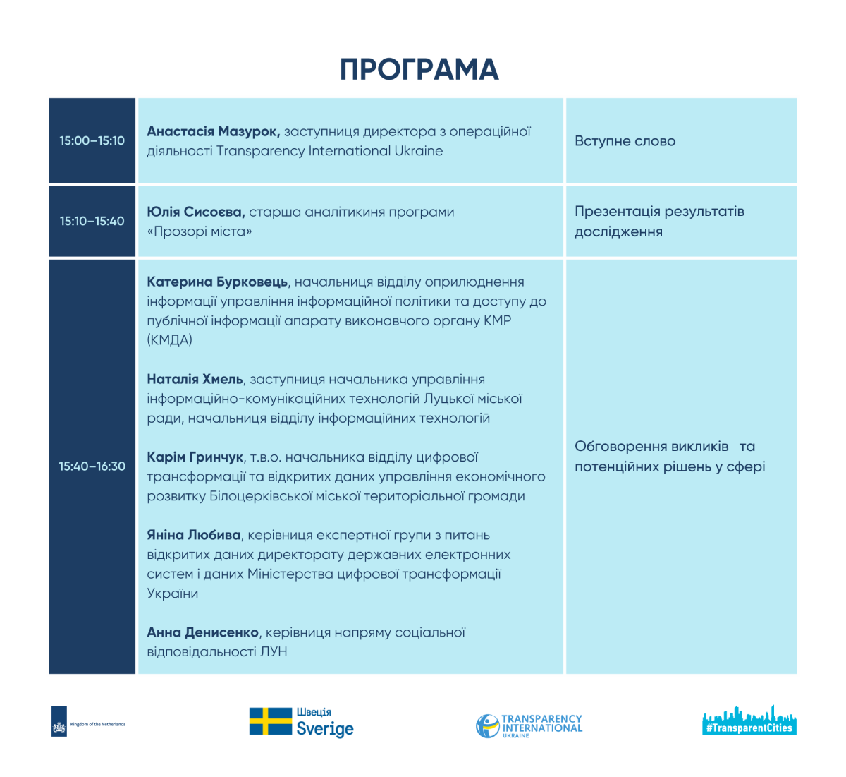 Разом із представниками органів місцевого самоврядування, Міністерства цифрової трансформації України та експертного середовища подискутуємо про те, чому високі позиції України в міжнародних рейтингах не завжди означають належні відкриті дані в містах і що потрібно змінити