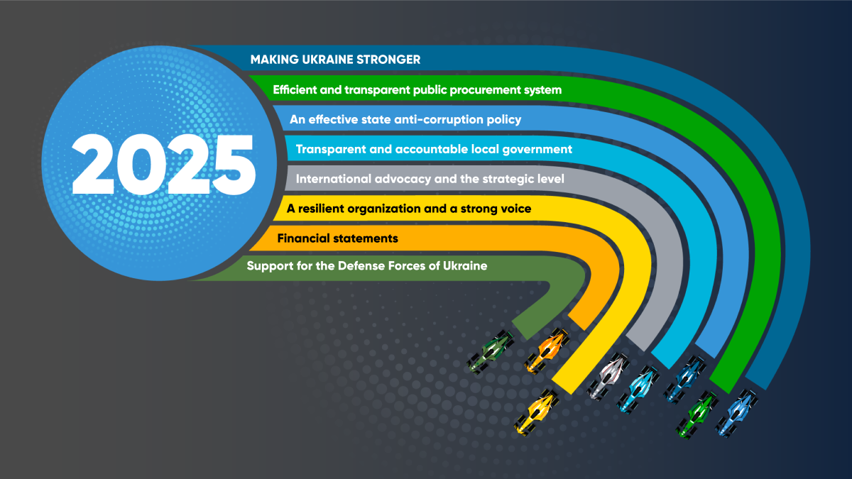 The organization’s core priorities remain unchanged: strengthening state anti-corruption policy, public procurement, city council transparency, organizational resilience, and international advocacy.