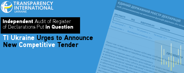 Transparency International Ukraine urges the National Agency for Prevention of Corruption to cancel the procurement for performance of the audit of the Unified State Register … Continue reading Independent Audit of Register of Declarations Put in Question. TI Ukraine Urges to Announce New Competitive Tender