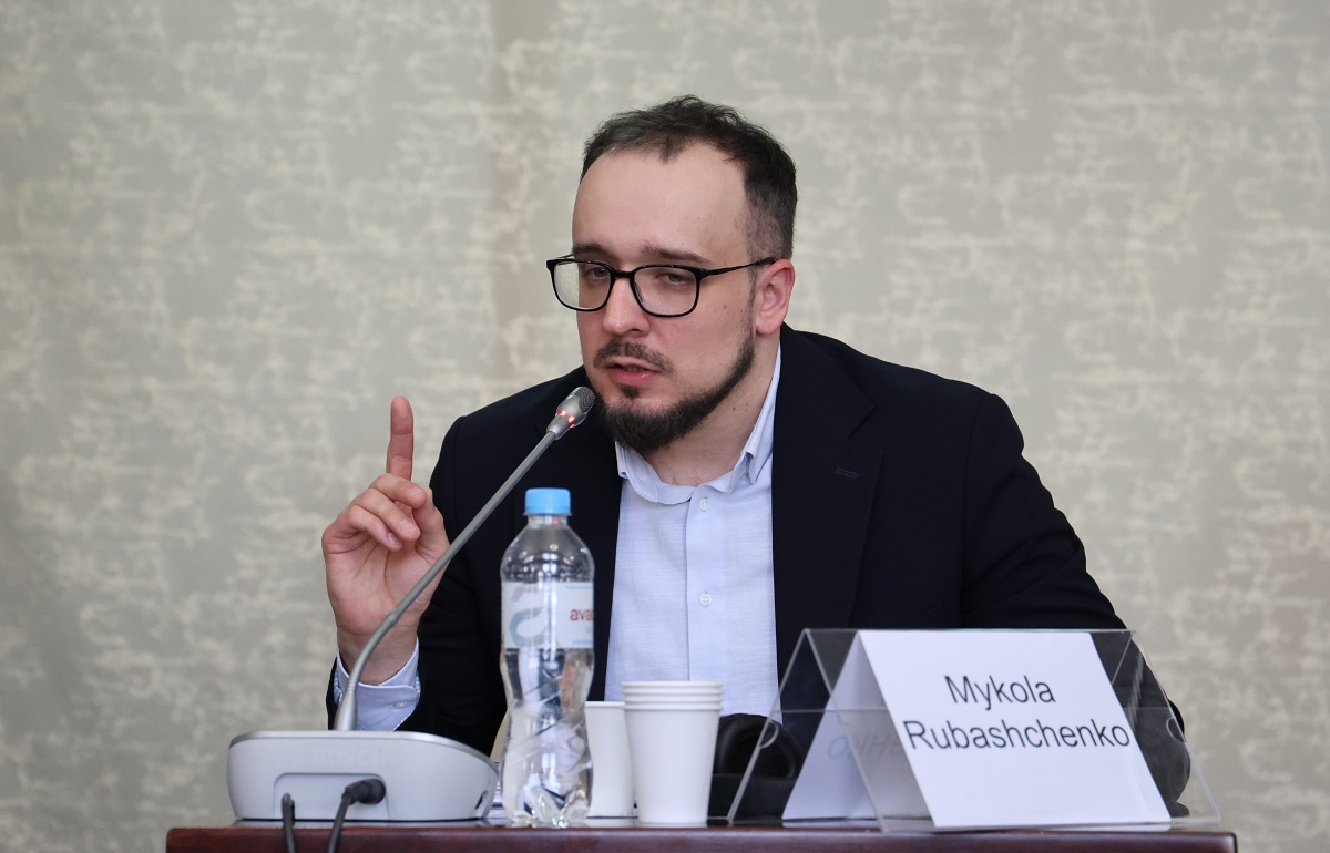 The interview began with a question about the professional accomplishments the candidate is most proud of. Among five key achievements, Rubashchenko cited his academic work, including dissertations on national security and liability for collaborationism, as well as his expert involvement in drafting legislation to criminalize sanctions violations. In response to a PCIE follow-up about his membership in a working group on amendments to the Criminal Code, the candidate clarified that he served as an expert evaluating the concept and helping develop the draft law on criminal liability for violations of sanctions legislation.