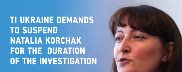 Transparency International Ukraine calls on the Cabinet of Ministers to suspend Head of the National Agency for Prevention of Corruption Natalia Korchak for the duration … Continue reading TI Ukraine Demands to Suspend Natalia Korchak for the Duration of the Investigation