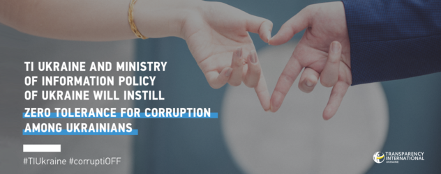 To reduce the acceptance of corruption among citizens and draw Ukrainians’ attention to the problems of bribery. Such goals have been defined by the Ukrainian … Continue reading TI Ukraine and Ministry of Information Policy of Ukraine Will Instill Zero Tolerance for Corruption Among Ukrainians