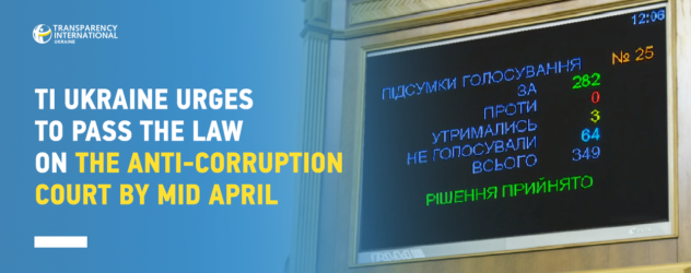 Transparency International Ukraine lauds the productive voting of the Verkhovna Rada on draft law 7440 “On the High Anti-Corruption Court” in the first reading. The … Continue reading TI Ukraine Welcomes Passage of Draft Law 7440 on the Anti-Corruption Court in First Reading and Urges to Pass the Law Completely by Mid April