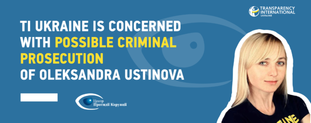 Registration of the criminal proceeding involving member of the board of CSO Anti-Corruption Action Center Oleksandra Ustinova and her husband can be viewed as pressure … Continue reading Transparency International Ukraine is Concerned about Possible Criminal Prosecution of Anti-Corruption Action Center Representative