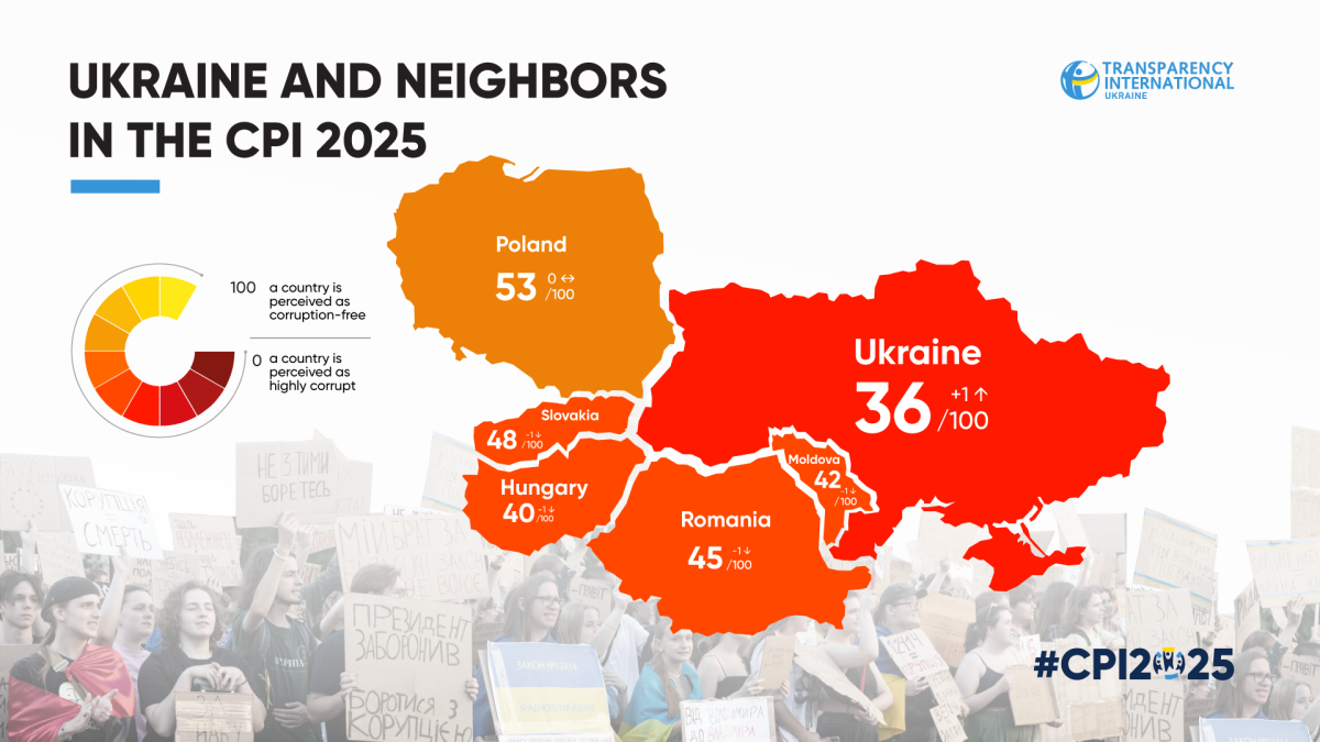 Ukraine scored 36 out of 100 in the 2025 Corruption Perceptions Index (CPI), showing a minimal increase of one point. Despite this positive dynamics, Transparency International Ukraine (TI Ukraine) warns that the current result is an “advance” granted to the authorities by society and international partners—not the outcome of a consistent state policy.