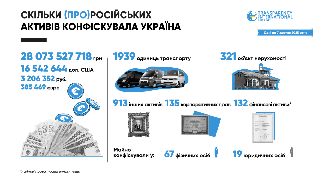 TI Ukraine моніторить весь процес конфіскації російських активів і збирає відповідні дані. Нижче наводимо узагальнені дані, а повну інформацію можна дізнатися з таблиці, доступної для вивантаження.